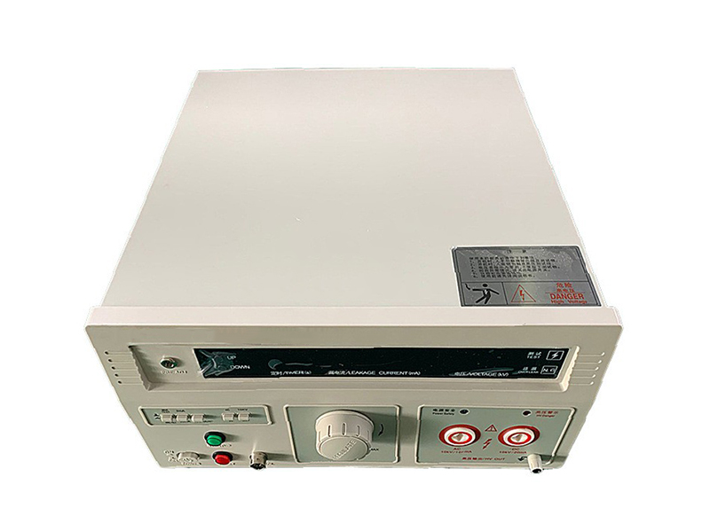 其工作原理是:把一個高于正常工作的電壓加在被測設備的絕緣體上,持續一段規定的時間,加在上面的電壓就只會產生很小的漏電流,則絕緣性較好。程控電源模塊、信號采集調理模塊和計算機控制系統三個模塊組成測試系統。選擇耐壓儀的2個指標:最大輸出電壓值及最大報警電流值的數值。
