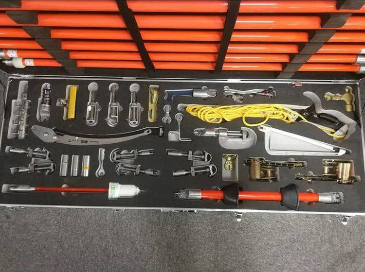 3.配置:修枝剪、修枝鋸、錘頭、鋼鋸、棘輪扳手、套筒、靈活扳手頭、異物切割刀、異物剝離器、導(dǎo)線刷、交換母頭、交換公頭、拉閘桿接頭、萬向刀刃頭、鏟叉、卡線鉤、鎖頭、繞線器、并線器、防雨操作桿、驗(yàn)電器、絕緣螺旋接頭操作桿